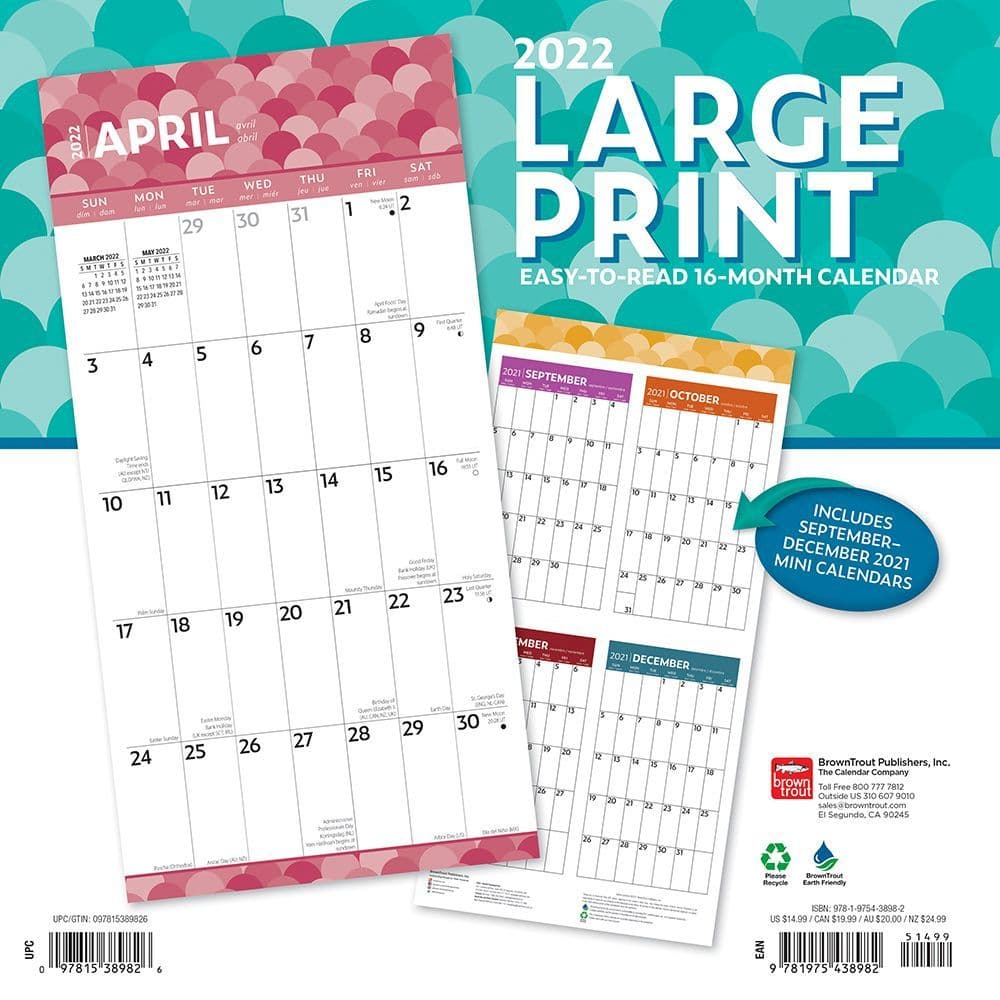 Large Print 2022 Wall Calendar - Calendars.com from www.calendars.com